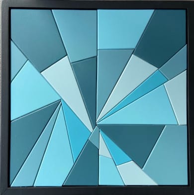 Réalisé en bois peint, en petit format carré de 38 × 38 cm, cette pièce se distingue par son fond turquoise lumineux, une teinte apaisante qui évoque la fraîcheur de l’eau, la fragilité du verre, la sérénité du ciel et les nuances vivantes de la nature.